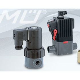 It is available as a 2/2 and 3/2-way variant. As a 3/2-way variant, it can be used as a distributor or mixing valve. Various diaphragm materials and circuit functions are available depending on the actual application. Brass, stainless steel (316L) and polypropylene bodies are offered. The solenoid coils are moulded with a chemically resistant epoxy. Since the coil system is separated from the medium by a diaphragm, the valve is especially suitable for critical media such as aggressive acids and lyes. The 0330 is equipped with manual override for start-up and testing. To reduce energy demands, all the coils can be delivered with electronic power reduction or as an impulse variant. The switching status can be indicated via position feedback as a binary or NAMUR signal.
